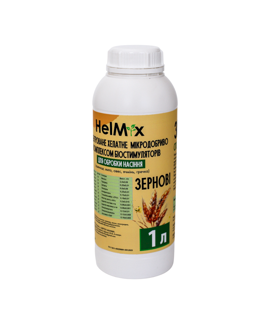 Концентроване хелатне мікродобриво для обробки насіння зернових 1 л — це сучасне рішення для підвищення ефективності вирощування зернових культур.